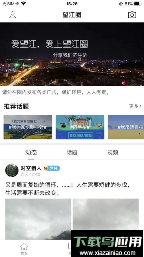 首页设计简洁明了,灵动的发布按钮让发帖变得轻松简单。