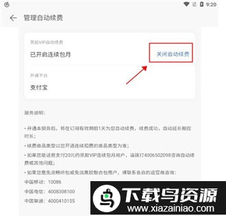 5、在打开的自动续费管理界面中,点击关闭服务即可完成操作。
