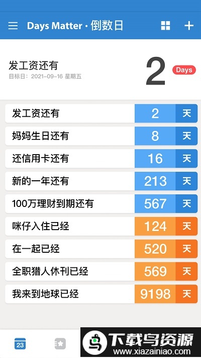 倒数日 Days Matter 是一个专注于记录重要日期的工具,你可以用它来追踪发工资的剩余天数、信用卡还款日、恋人生日倒计时,或是计算宝宝已出生的天数,甚至记录自己来到这个世界已经多久。
