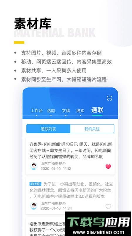 闪电云平台应用程序集策划、采集、编辑、审核、发布、反馈于一体,是融媒体生产管理平台。它支持多种线索汇聚方式,包括网络线索抓取、内部员工爆料及热线接收,可一键生成报题并转为稿件。平台素材库兼容图片、视频、音频等多种内容存储,支持移动端与网页端云端回传,使内容采集更高效。素材可实现共享,一人采集多人使用,内容同步至生产网络,大幅缩短编辑制作流程。