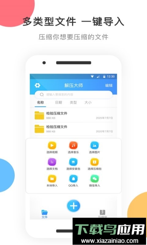 2、轻松读取手机本地各种类型的文件并进行压缩打包;