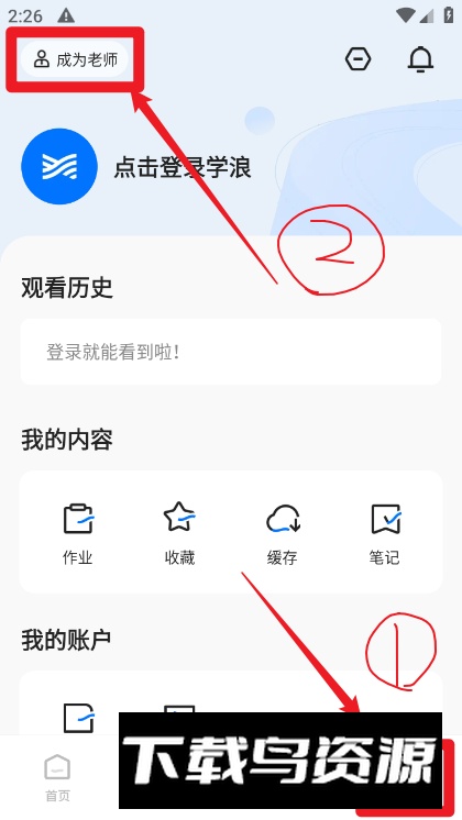 打开应用后,点击右下角我的,再选择左上角的成为老师;