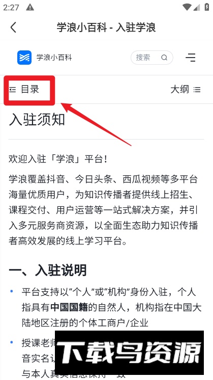 在弹出界面中点击目录选项;