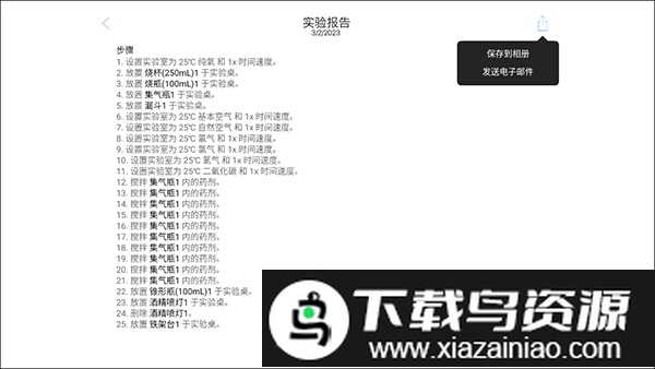 实验完成后,轻按按键即可自动生成记录所有步骤的实验报告,报告可以直接保存为图片或通过邮件发送分享。