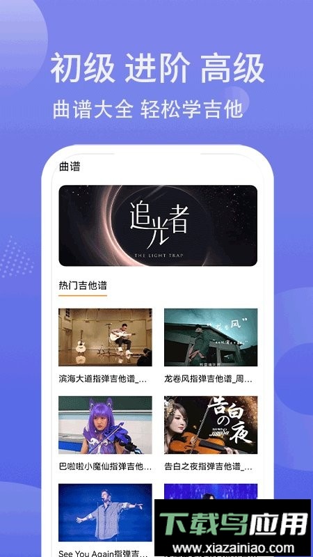 【吉他乐谱】汇集热门流行曲目乐谱,持续更新曲库,帮助用户拓展演奏曲目;
