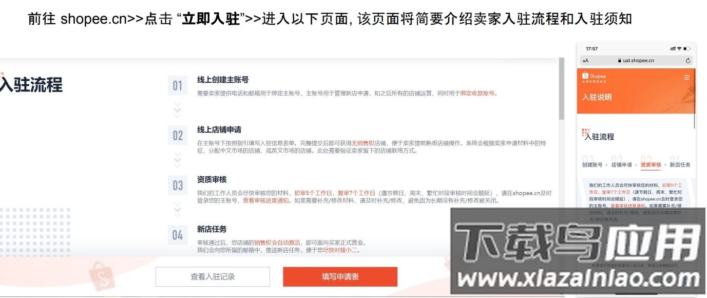查看审核进度方法:打开Shopee官网,点击“查看入驻记录”,登录主账号即可查看审核状态通知。