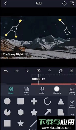 用户可将图像、视频、音频、形状、文本、绘画等图层加入项目中。