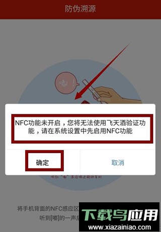 2、将手机背部的NFC感应区对准茅台酒瓶标相应位置,听到“嘀”声提示。