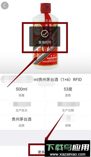 3、若查询界面显示“查询成功”,并展示商品名称、生产日期、规格等详细信息,则表明茅台酒为真品。