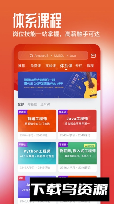 慕课网官方版应用专注于提供IT技能在线学习服务,是一个面向开发工程师的自学平台。这里汇集了超过一万节免费视频课程,并规划了清晰的学习路径,同时提供企业级实战项目与在线编程工具。由一线技术专家带领你夯实基础、积累开发经验,从这里开始学习编程,会是一条高效的道路;喜欢的朋友不妨在本站下载。