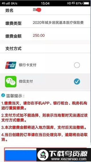 4、完成支付操作,推荐使用微信进行付款。