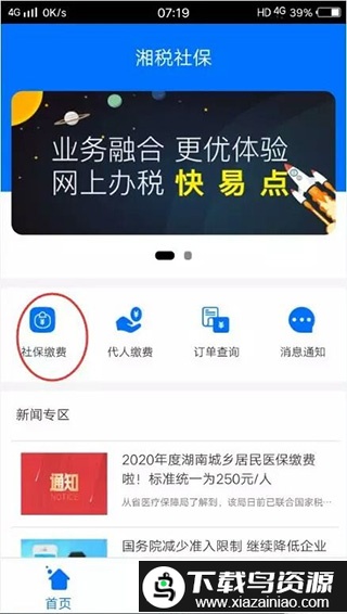 首先在本站下载安装最新版本的湘税社保应用,打开软件后按照以下步骤操作即可。