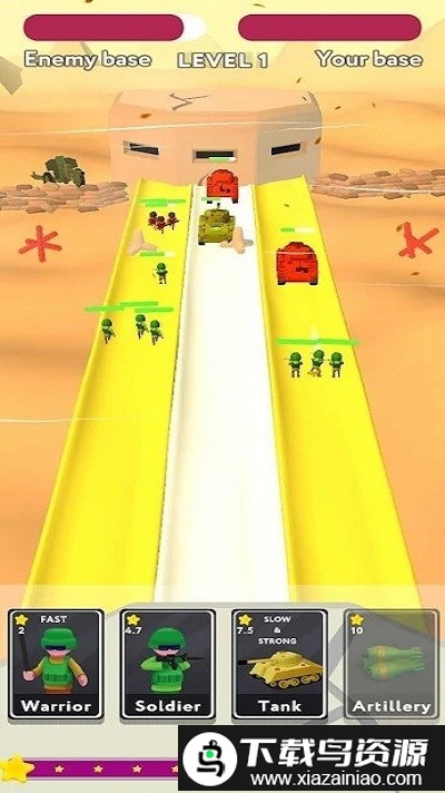 玩家在游戏中要指挥自己的部队展开射击对抗,必须彻底消灭所有敌人才算通关,独特的关卡设计让玩法充满趣味;游戏准备了大量不同难度的关卡供玩家自由挑战,整个战斗过程紧张又刺激。