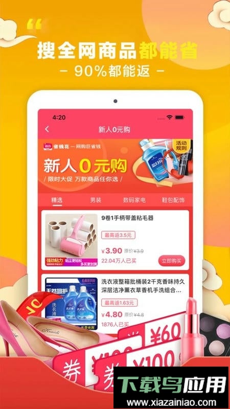 省钱花app能够帮助用户查找各大电商平台的隐藏优惠券,无论是京东还是淘宝上的大额折扣,在这里都可以方便地获取。如果你是首次注册的新用户,还能参与0元购等专属福利,有需要的朋友不妨下载尝试。