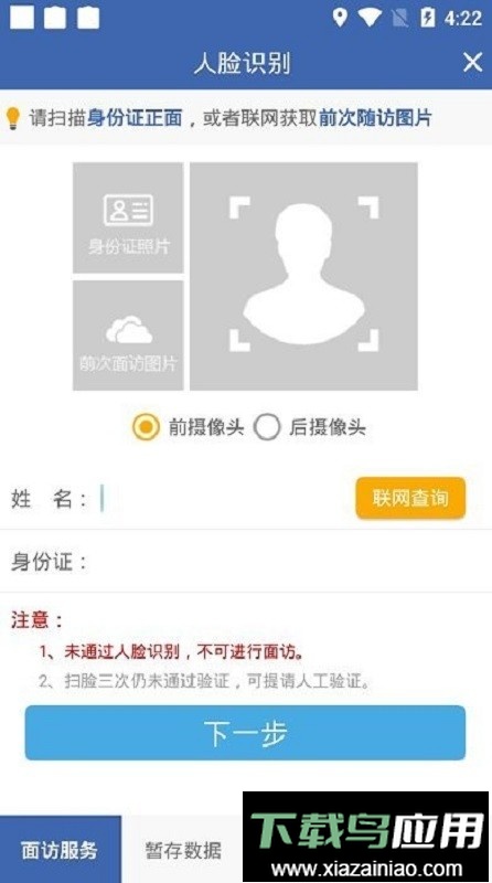 信息绑定:首次使用需进行人脸识别并绑定姓名与身份证信息;