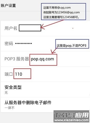 输入邮箱账号与密码,协议类型选择POP3;