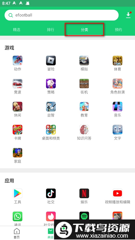 进入分类页面,软件和游戏均按类别划分,方便你根据兴趣快速查找