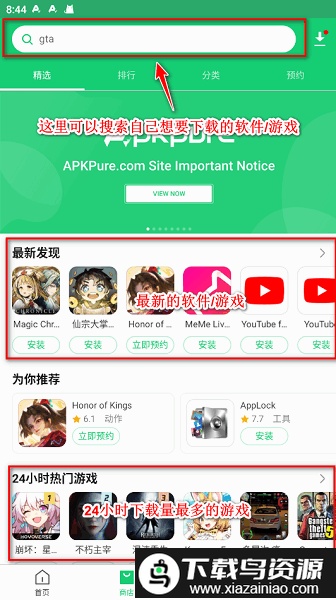 从本站获取APKPure最新版本并启动软件,其主要功能布局如下所示