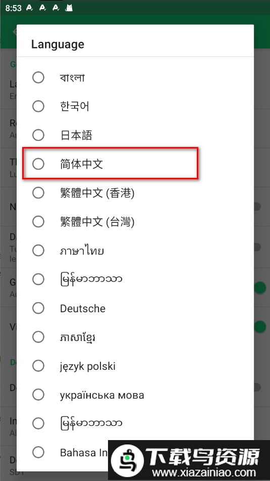 在语言列表中找到“简体中文”并点击确认