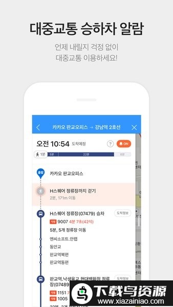 4、以及所有附加的导航功能:收藏的地点能够直接显示在地图界面上;提供实时公交信息,减少等候时间;实时路况信息帮你避开拥堵路段;乘坐地铁时提供清晰的地铁线路图;深夜回家可与朋友实时共享位置;在釜山、春川、木浦、蔚山、济州、光州等城市,还提供高精度的公交车位置信息服务。