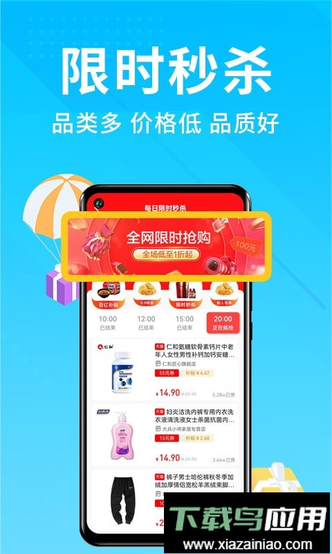 【9.9包邮】每日精选上百款高性价比商品,覆盖多类品类,不仅享受包邮服务,购物还有返利,提现过程不收取手续费。