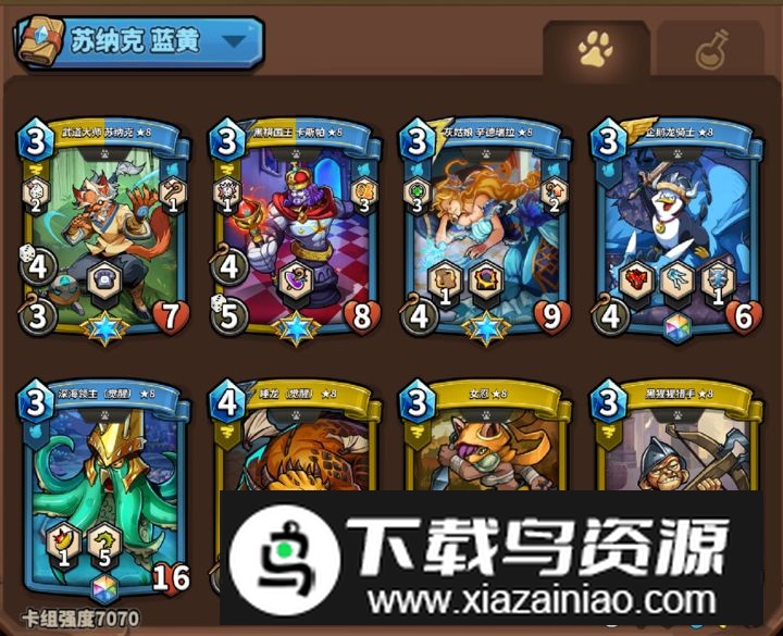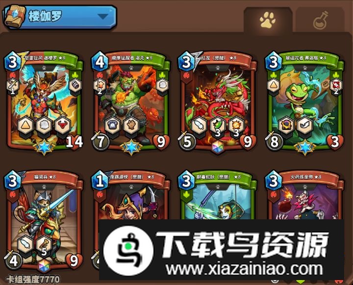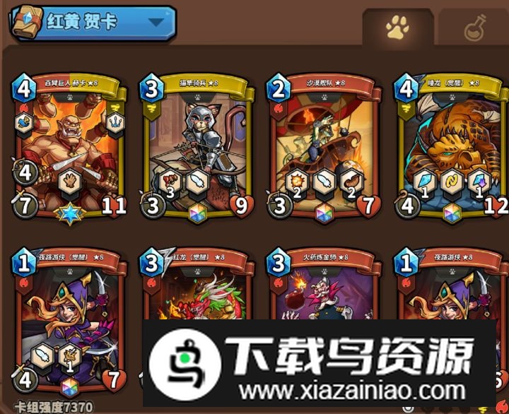 满级猫骑士具备9点攻击力与飞行能力,面对低星级精英卡优势明显;满级统帅拥有8点攻击、11点生命值,兼具远程攻击与退回能力,能有效冲击对手阵容。