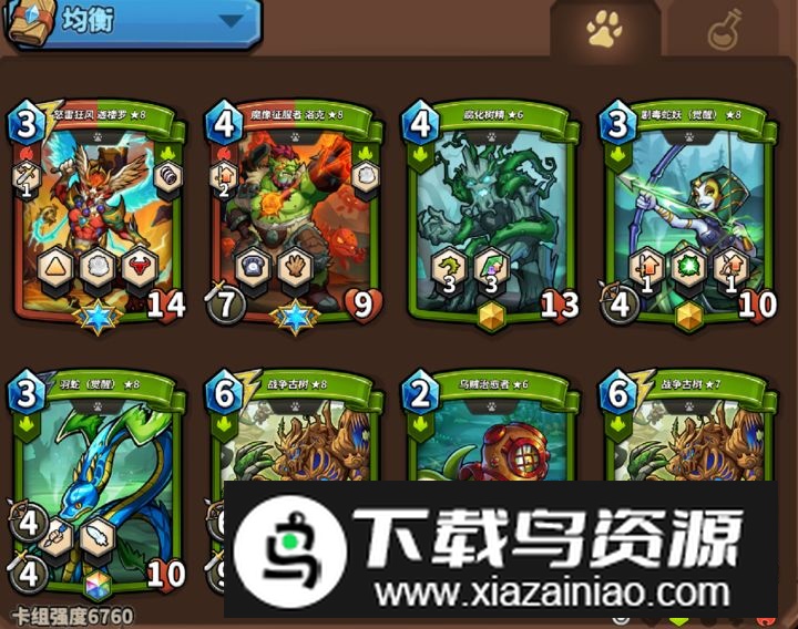 一套典型阵容包含:精英卡一张、彩色卡三张、金色卡两张、白银卡两张;道具卡可以酌情节省,务必谨慎使用金币。