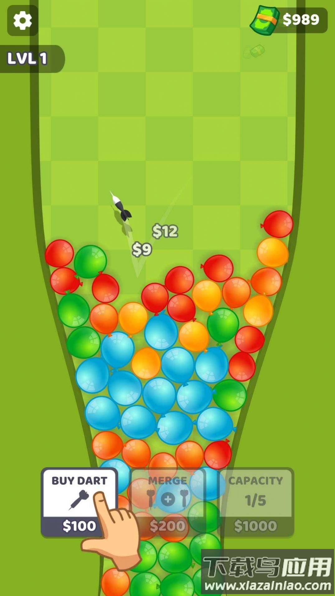 4、持续升级手中的切割器,击破屏幕上出现的所有气球。