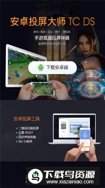 实现游戏、视频、音乐及照片的一键快速投屏;是进行手游直播的得力助手;设计简洁直观,堪称最简单的安卓投屏解决方案。
