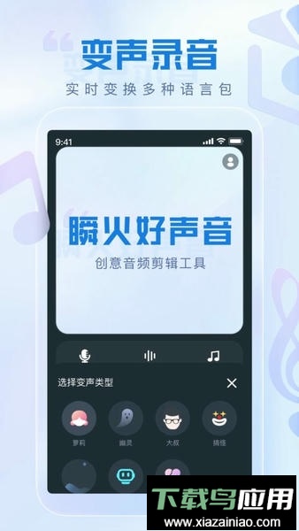 瞬火好声音app是一款功能丰富的音频处理工具,能够将你的原声轻松转换为多种趣味音效。无论是男声、女声、童声或是动物声音,都能快速生成。软件内置多样化的音调、语速及回声调节选项,让你的声音变得独具个性与创意。通过简单操作,这些变声效果即可应用于聊天对话、语音记录或多媒体内容中,为日常交流增添更多乐趣。