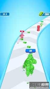 游戏采用跑酷玩法,目标是收集更多钞票来提升自身价值与等级。过程中需留意高级别敌人的干扰。通过升级角色能力,可以战胜它们并实现等级的进一步飞跃。