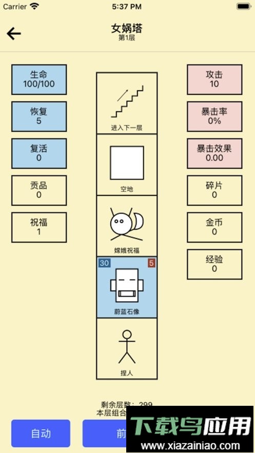 这是一款轻度roguelike游戏;你可以与众神互动,提升自己的创造手艺,收集各类碎片,并收获强大的祝福。最终带领你捏出的人物,成功挑战女娲塔。