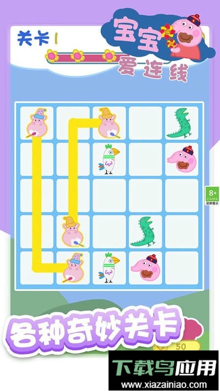 宝宝爱连线是一款面向儿童的益智休闲单机手游,设计了多样的关卡挑战。游戏采用简洁的连线玩法,需要将画面里相同的头像逐一分类连接,过程中线条不能交叉或重叠。玩家需要谨慎规划,充分利用每个格子来完成连线解谜。