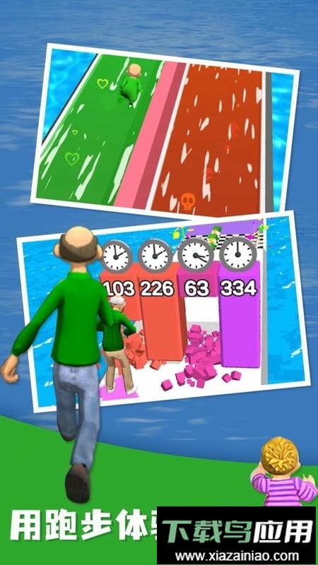 这款游戏模拟了人生的跑道历程,沿途出现的障碍需要玩家自行判断应对;收集赛道上大量的年轻药剂可以延缓衰老,切记避免接触加速变老的物品,一旦角色过于苍老,游戏便会宣告结束。