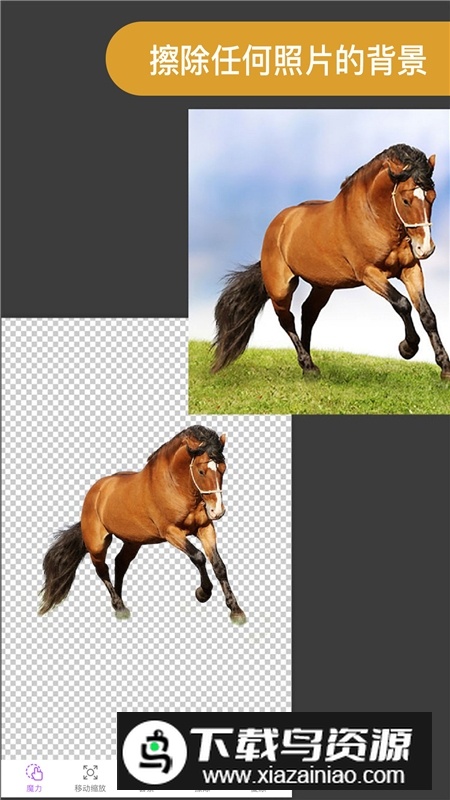 这款智能抠图应用专为安卓用户打造,具备全自动处理能力,只需一键即可精准识别人像轮廓;应用内还集合了多样化的编辑工具,让复杂图片制作变得简单轻松,无需繁琐步骤就能完成各种创意效果,喜欢的不妨在本站下载。