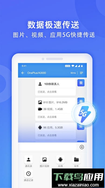 采用对话式交互界面,轻松勾选通讯录、图片、视频及应用等手机数据;无需重复下载其他应用,方便直接。