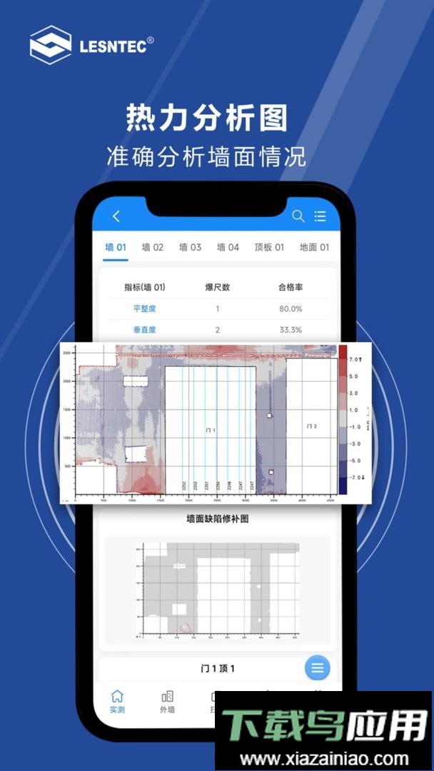 具备三维激光扫描功能,操作简便,数据上传迅速;通过热力分析图精确评估墙面状况;结合3d模型图,全方位审视立体空间环境;有助于促进施工机器人及智能工程机械的研发应用。