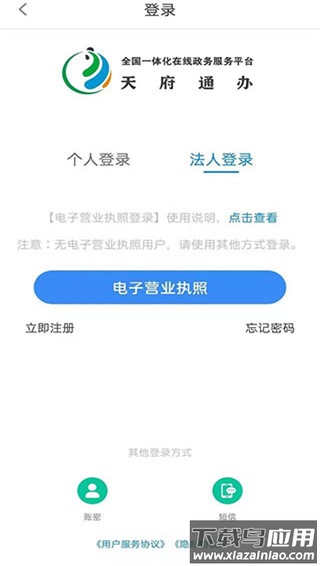 2、点击“你好,请登录”,选择“法人登录”后点击“立即注册”;