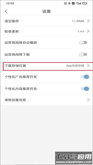 2、在设置页面里,找到并点击“下载存储位置”这一选项;