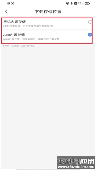 3、软件提供手机内部存储与应用程序专属存储两种路径,根据个人需要选择即可完成设置。