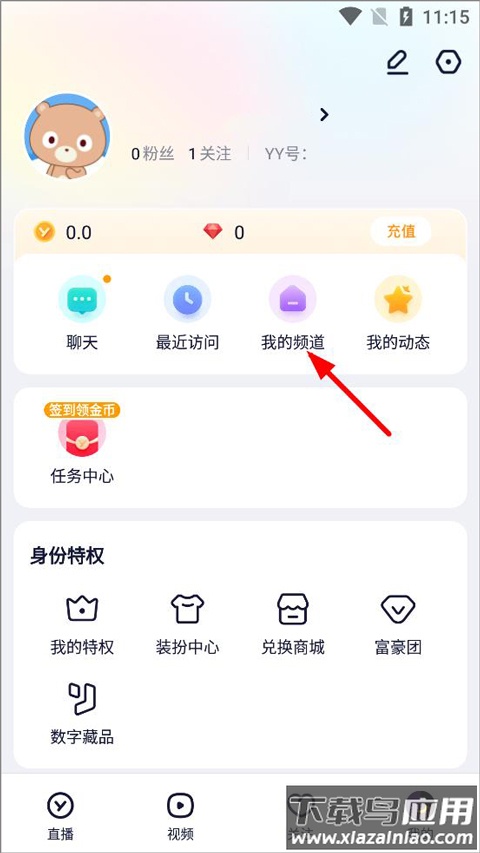 2. 进入我的频道页面后,点击“创建频道”功能;