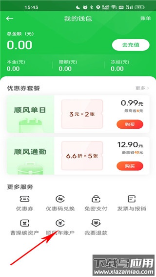 3. 在钱包页面可查看账户余额,点击“顺风车账户”进入明细;