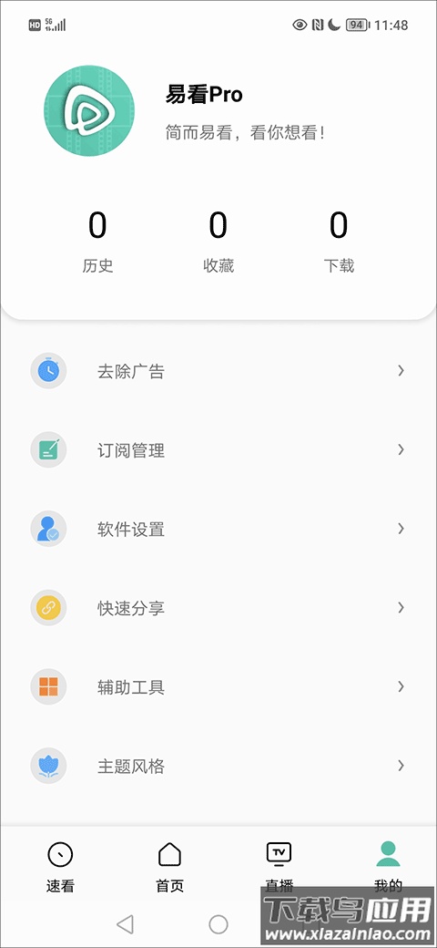 4、个人中心设有历史记录、收藏夹、订阅管理等实用功能。