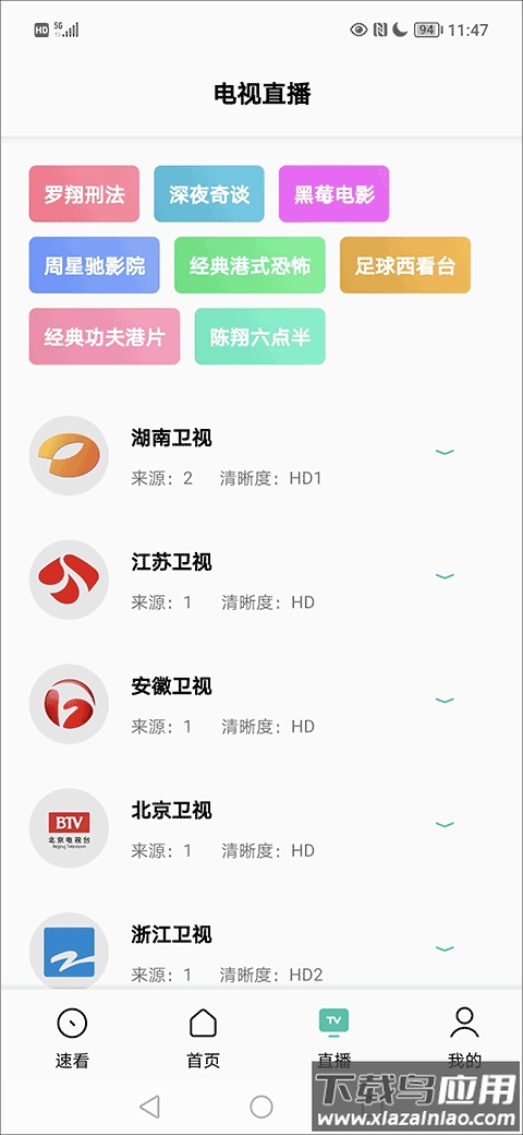 3、软件还集成电视台直播功能,包括湖南卫视、江苏卫视等频道;
