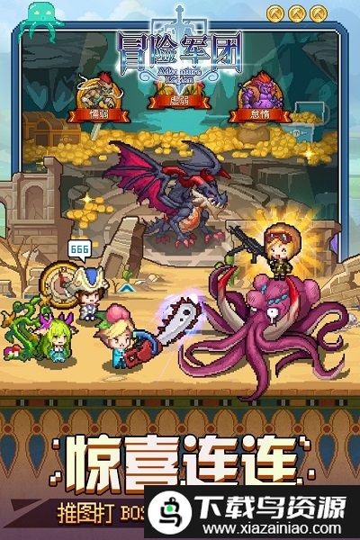 像素风格的挂机冒险手游冒险军团正式发出英雄召集令。这里准备了大量福利活动,超过百位知名英雄等待你的召唤;英雄之间拥有羁绊组合,能在关键时刻逆转战局;多样玩法让你即使挂机也能增强实力。加入冒险军团,解放双手,重新享受简单愉快的游戏时光。