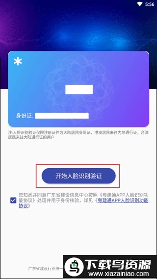 (一)勾选同意《粤建通 APP 人脸识别功能协议》,点击【开始人脸识别验证】,跟随系统提示完成操作。