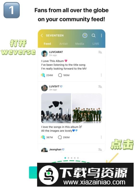 Weverse官方安卓最新版是一款连接粉丝与艺人的社交应用,它打造了一个专属的互动空间,让用户能够近距离关注喜爱的艺术家,通过动态、照片和视频分享彼此的生活与创作点滴,实现双向交流;如果你也期待这样的体验,不妨在本站下载。