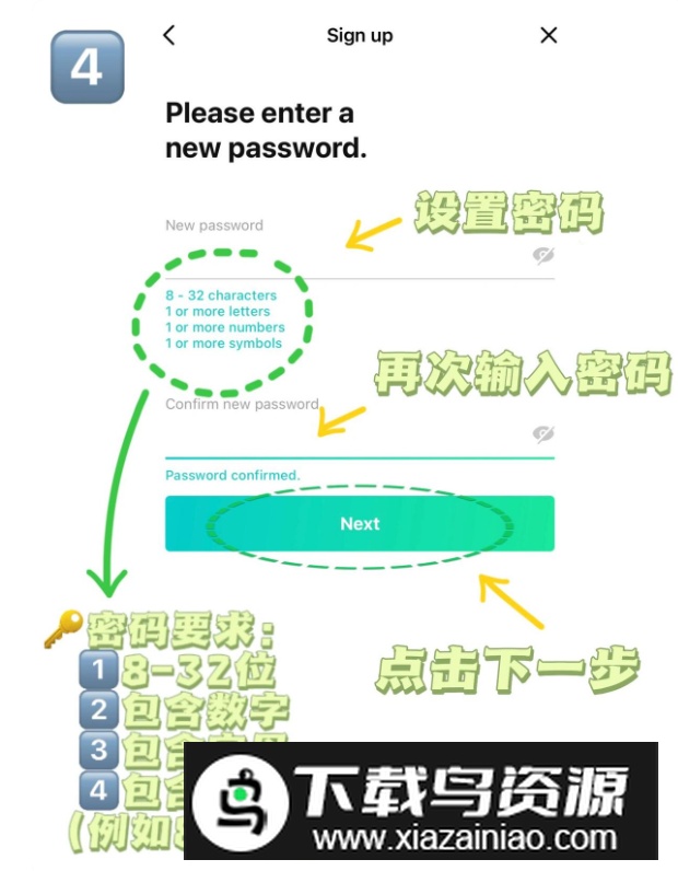 4.设置登录密码并重复输入,注意符合密码规则,随后点击Next。