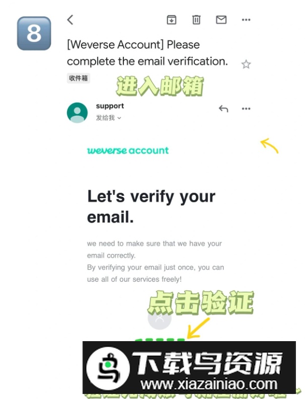 8.登录邮箱查收邮件,点击Verify Email完成验证,即可返回应用登录账号。