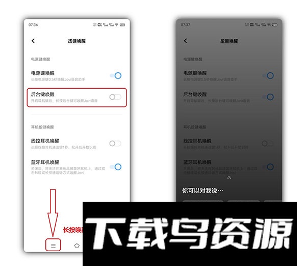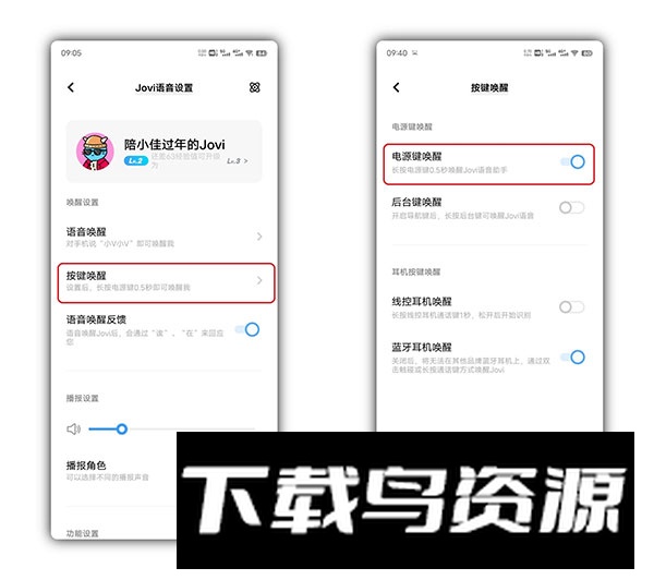 在按键唤醒设置界面启用电源键唤醒,长按电源键约0.5秒便可启动Jovi语音助手。
